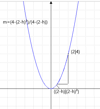 denn f(x)=x², wenn man hier 2-h ensetzt ergibt das (2-h)²