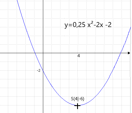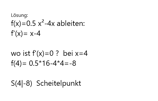 Berechne den Scheitelpunkt für f(x) = 0.5 x² -4x