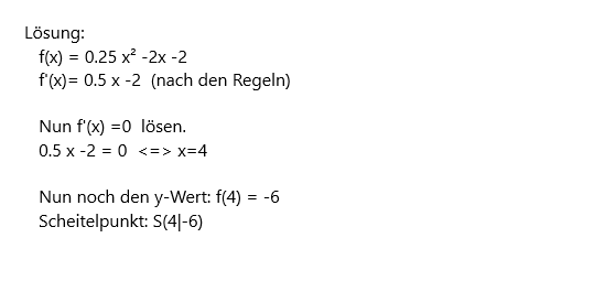 Berechne mit Hilfe der Ableitung den Scheitelpunkt der Parabel