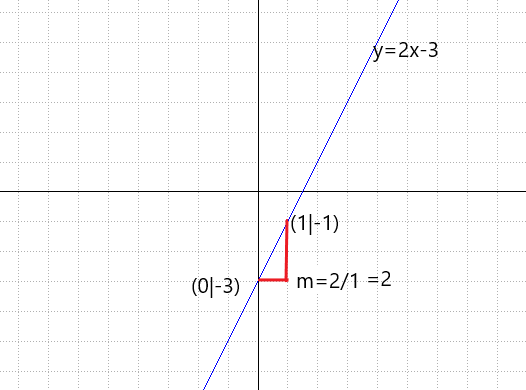 Diese Gerade y=2x-3 hat nun in jedem Punkt die gleiche Steigung, weil