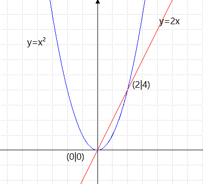 Bestimme die Steigung der Sekante durch (0|0) und (2|4)